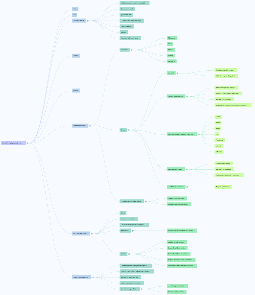 Poiché tutte le misure di crescita economiche, finanziarie e politiche (vendite, profitti, azioni, PIL, popolazione, interessi, inflazione ecc.) sono calcolate come variazione percentuale per unità di tempo, la crescita esponenziale è fondamentale per capire il mondo, e nel nostro caso la deriva verso la quale stiamo navigando. Sì, deriva, perchè il cambiamento climatico in atto è regolato da un fenomeno esponenziale che sfugge alla nostra comprensione.