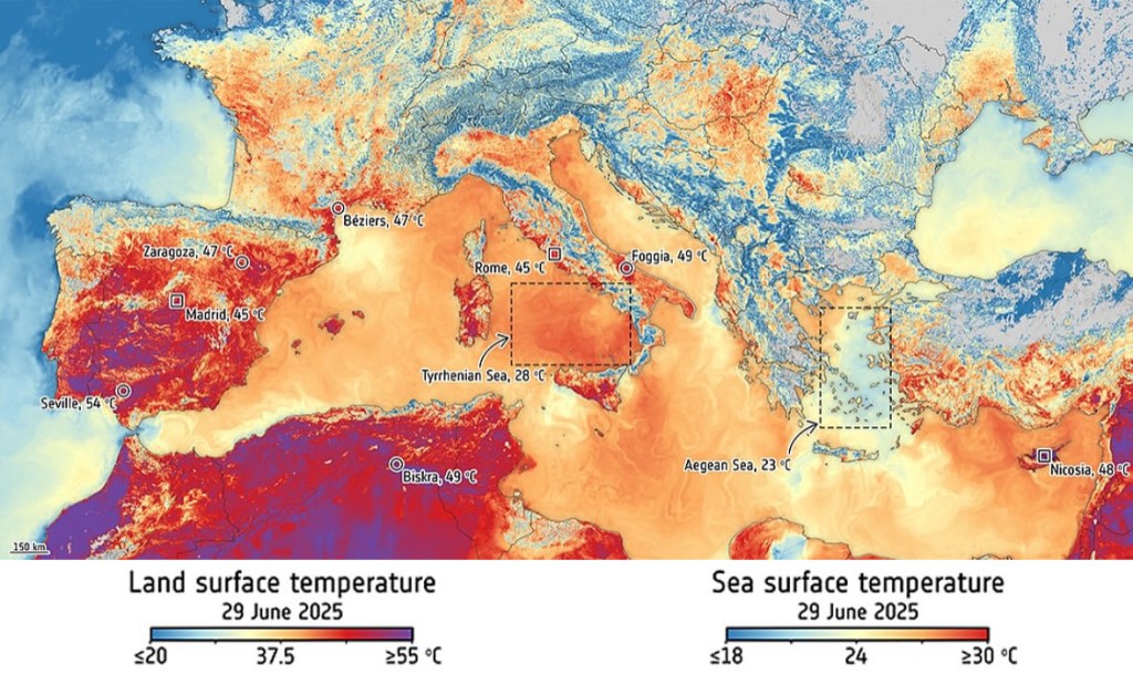 La mappa meteorologica dell’estate 2025 è dominata da un protagonista noto: l’anticiclone africano. Non è un fenomeno nuovo. La vera anomalia è che queste temperature, da 40 °C in su, stanno diventando la regola anche in periodi in cui, storicamente, ci si fermava attorno ai 30-32 °C. Parliamo di fine giugno, inizio luglio: stagioni che stanno cambiando pelle, anticipando l’intensità dell’estate più profonda.